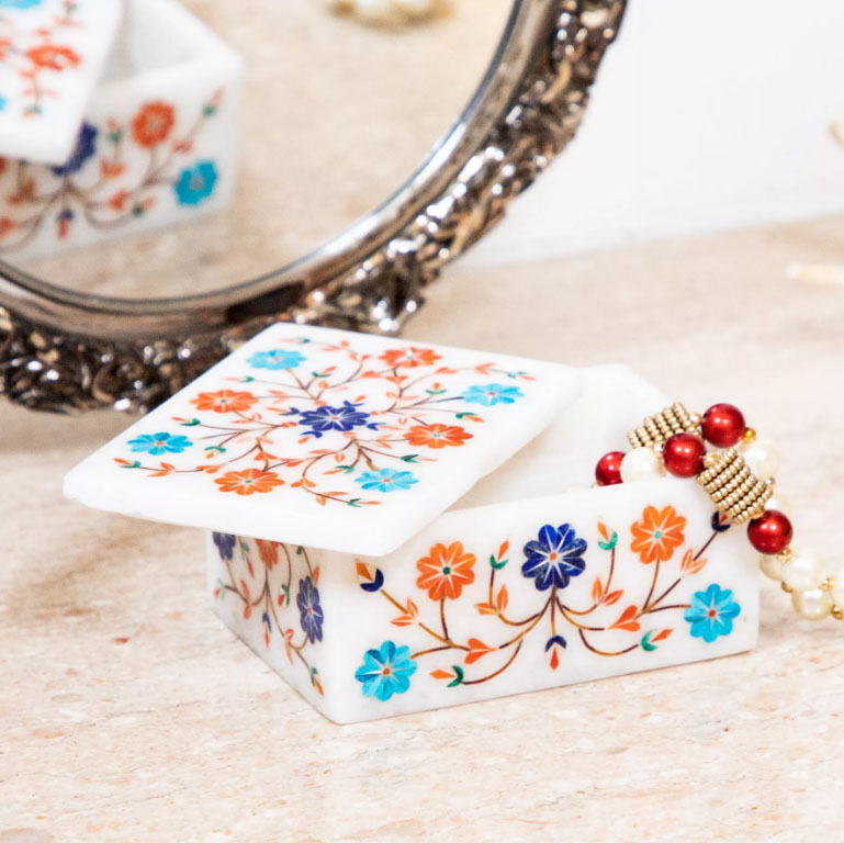 Pachchikari, also known as marble inlay art, is the foundation of our craft. This centuries-old technique involves carefully hand-cutting and fitting semi-precious stones into marble surfaces. Every design reflects patience, precision, and mastery of an art form passed down through generations. Our Pachchikari pieces range from traditional floral motifs to customized contemporary designs. Whether in tables, wall panels, or flooring, this art form creates timeless elegance. Owning a Pachchikari masterpiece means cherishing a true symbol of Indian heritage.