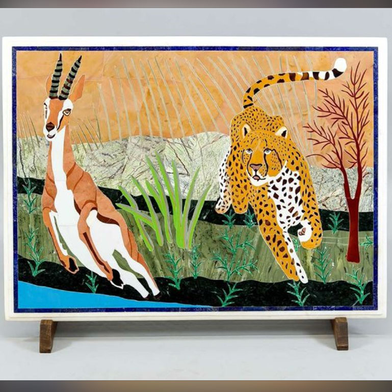 Our handcrafted scenery designs bring life to marble and stone surfaces through detailed inlay work. Artisans skillfully arrange semi-precious stones to create landscapes, floral motifs, and cultural depictions. Each piece is unique, carrying the beauty of both nature and heritage within its design. Scenery in marble inlay is often used in wall art, table tops, and decorative panels, adding elegance to interiors. These creations not only showcase fine craftsmanship but also narrate stories through stone.