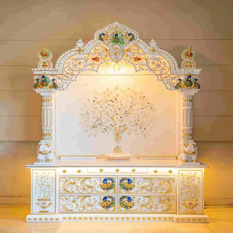 We specialize in crafting marble temples that blend spirituality with artistry. Each temple is carefully designed to suit your home, reflecting both traditional and modern styles. Skilled artisans carve and polish the marble, adding detailed inlay work with semi-precious stones for a divine appearance. These temples provide a sacred and serene space for daily worship while enhancing the beauty of your home décor. Our customized designs ensure that every temple is as unique as the devotion it represents.